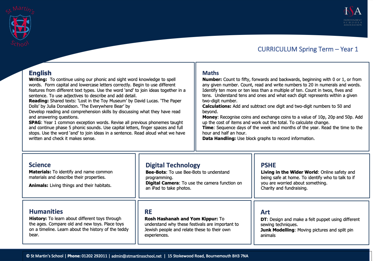 All pupils receive a thorough grounding in: English, Mathematics, Science, Geography, History, Digital Technology, Religious Education, Music, and Art/DT. Games, gymnastics and swimming lessons are enjoyed throughout the week. Spanish is taught in Years 3 and 4, with the children being offered the opportunity to learn Mandarin in Years 5 and 6.